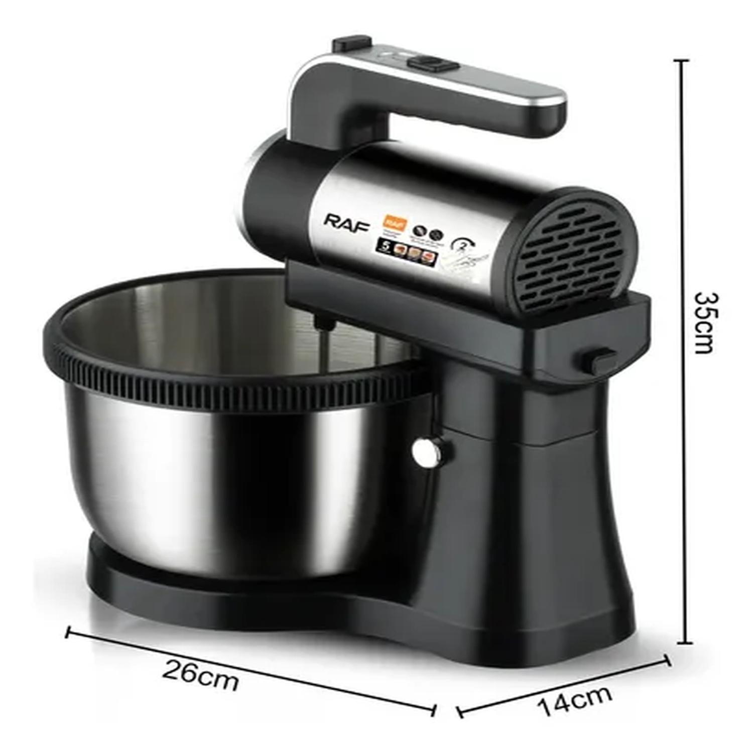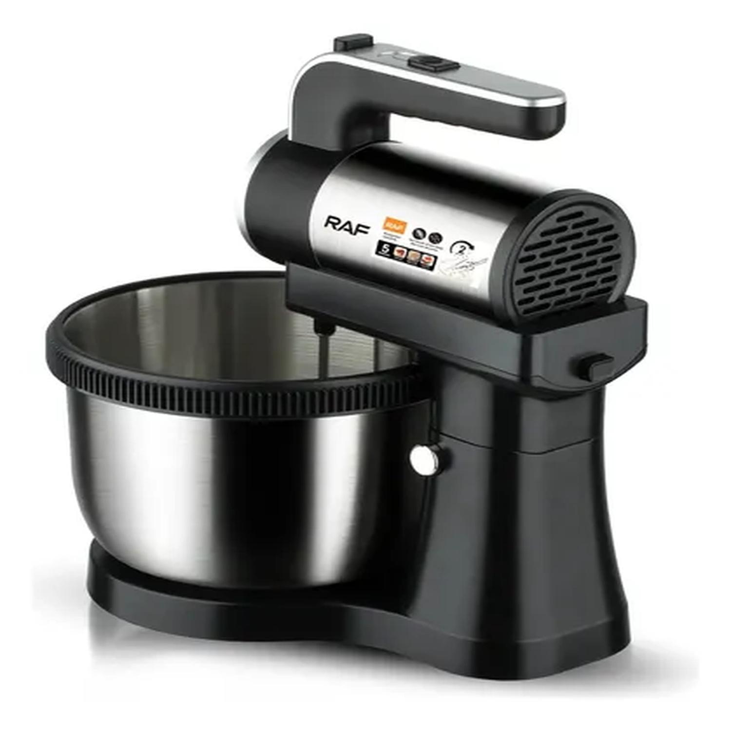 La Batidora de Pie RAF R.6655 es una herramienta profesional para repostería y panadería, diseñada para mezclar, batir y amasar con precisión. Con motor de 450W, bowl de acero inoxidable de 4.5 litros y 5 velocidades ajustables, ofrece potencia y capacidad para preparaciones exigentes.