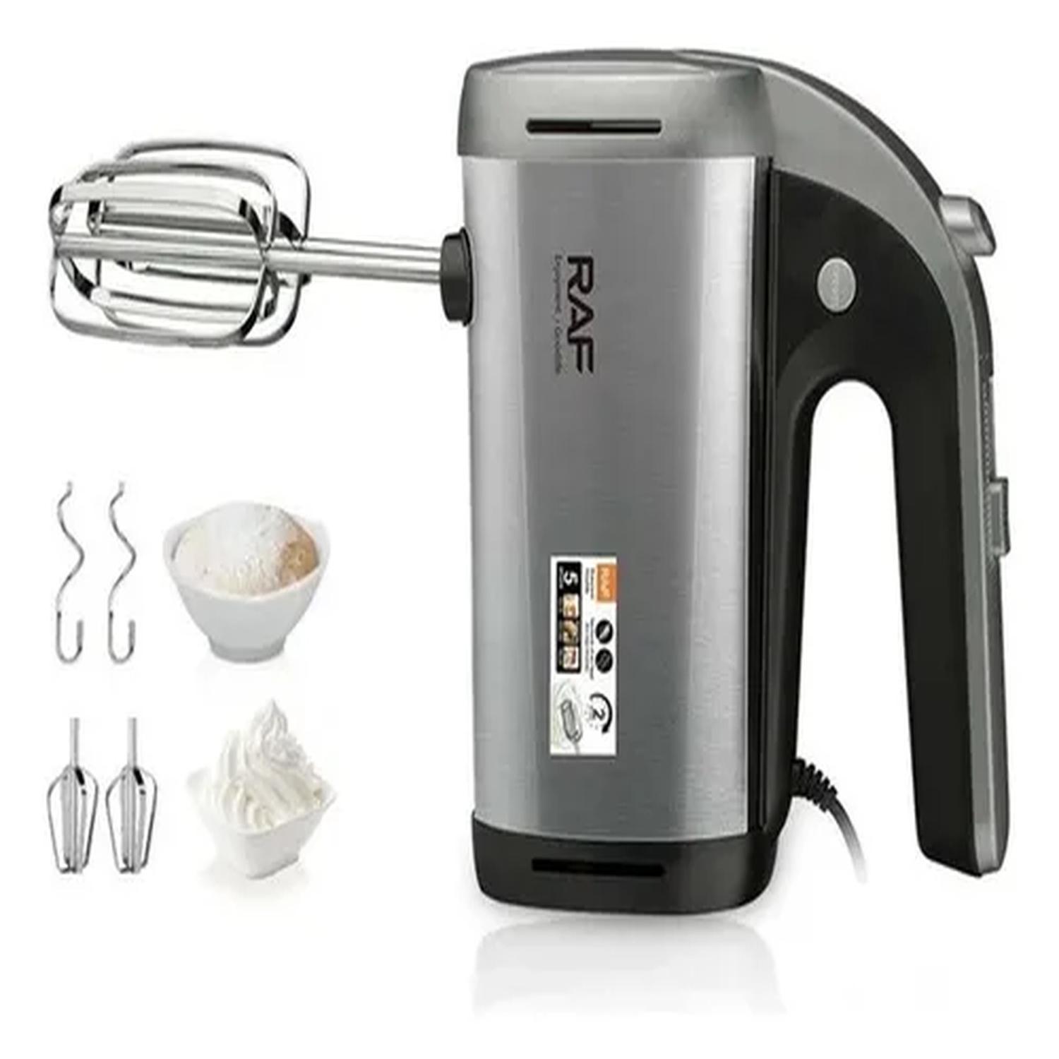 Batidora de mano práctica y eficiente con 5 velocidades y 150W de potencia, ideal para mezclar, batir y amasar con facilidad. Incluye accesorios intercambiables para mayor versatilidad en la cocina.