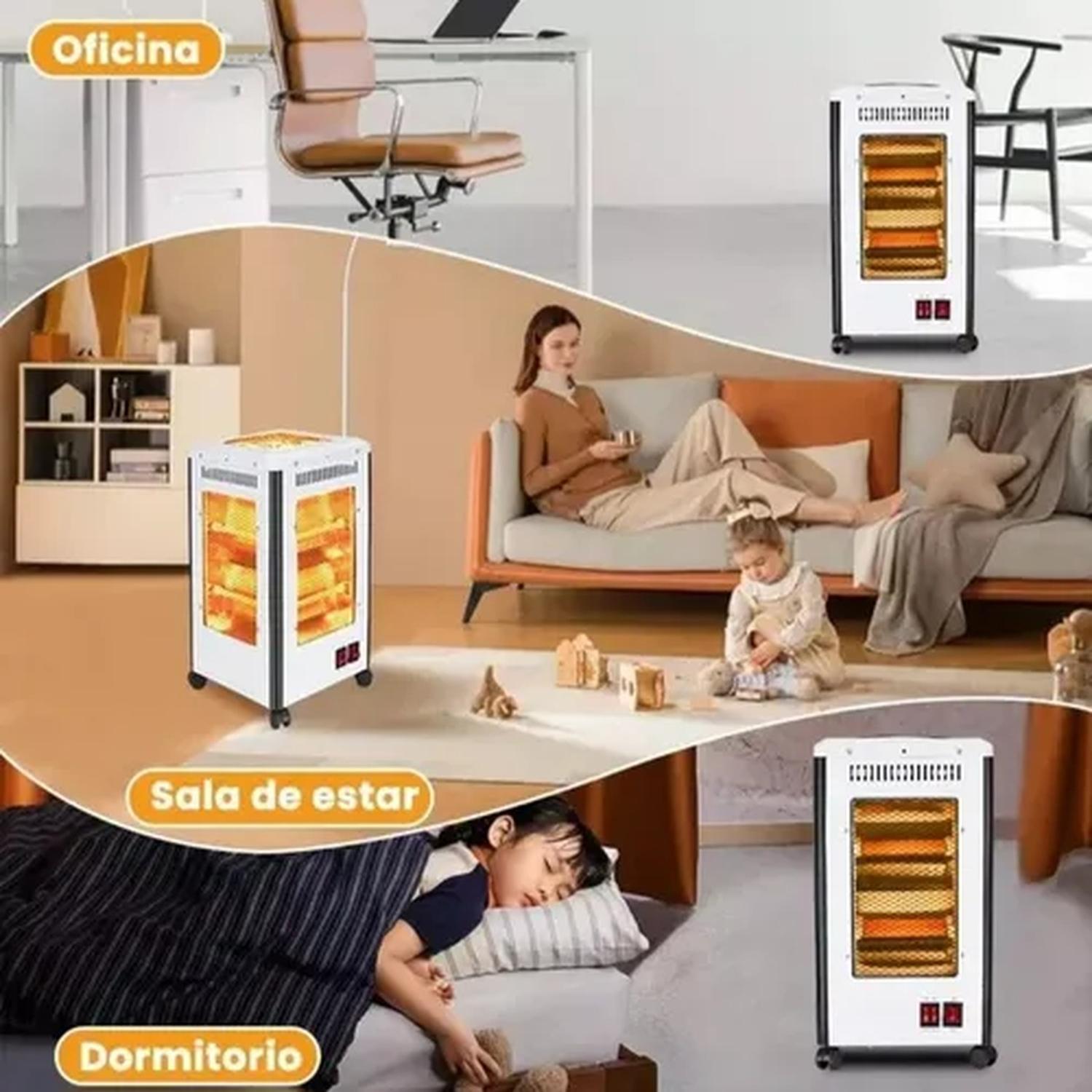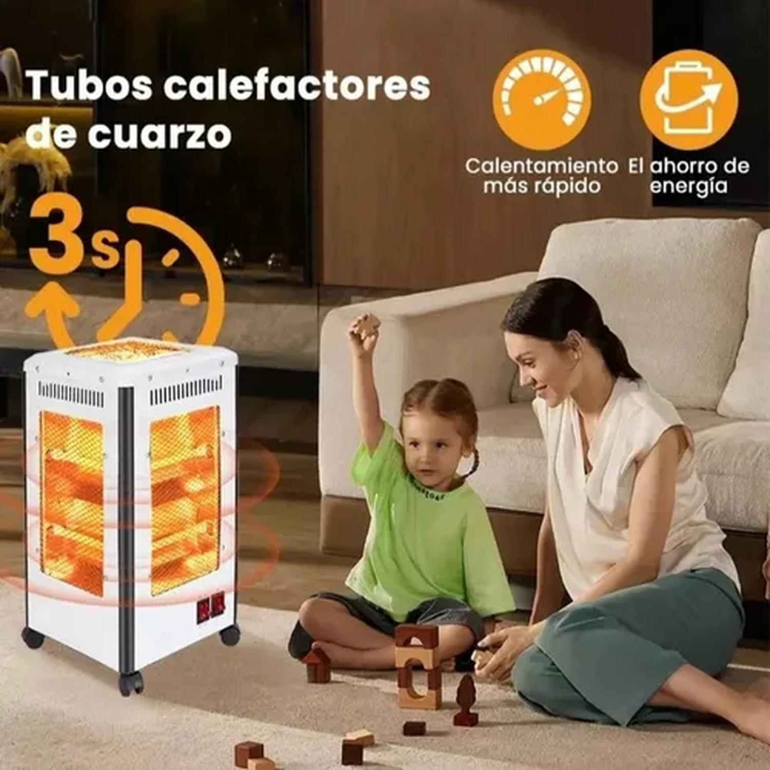 El tubo de calentamiento de cuarzo con buena estabilidad térmica se utiliza como material de calentamiento, calentamiento tridimensional omnidireccional de 360°, calentamiento rápido en 3 segundos, alta tasa de conversión de calor, calentamiento uniforme, área de calentamiento amplia y larga vida útil. Calentamiento de área grande 21 – 30m2, interruptor de perilla para un fácil ajuste para cumplir con diferentes escenarios ambientales y condiciones de temperatura.