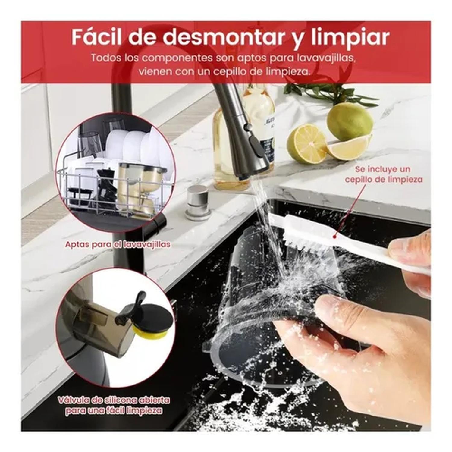 Fácil de limpiar: Incluye un cepillo de limpieza y permite lavar las piezas directamente con agua.