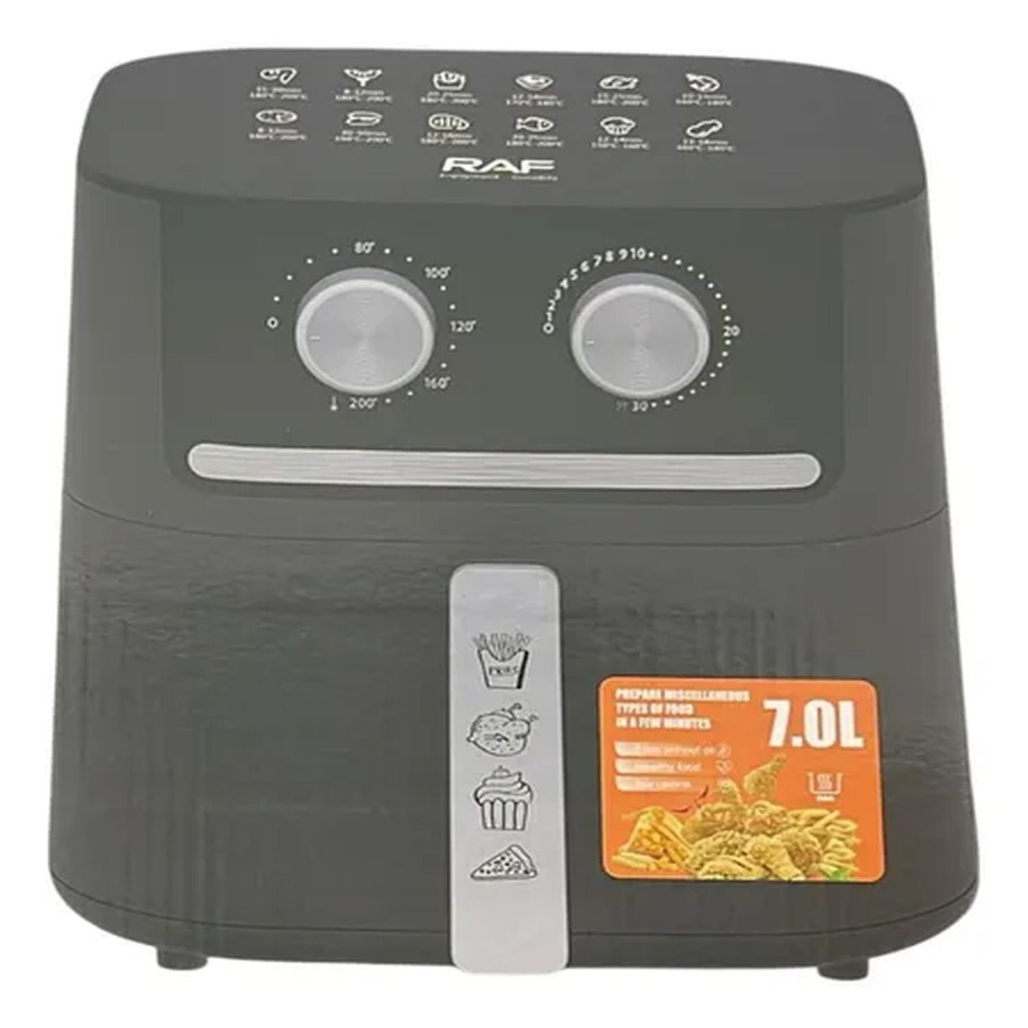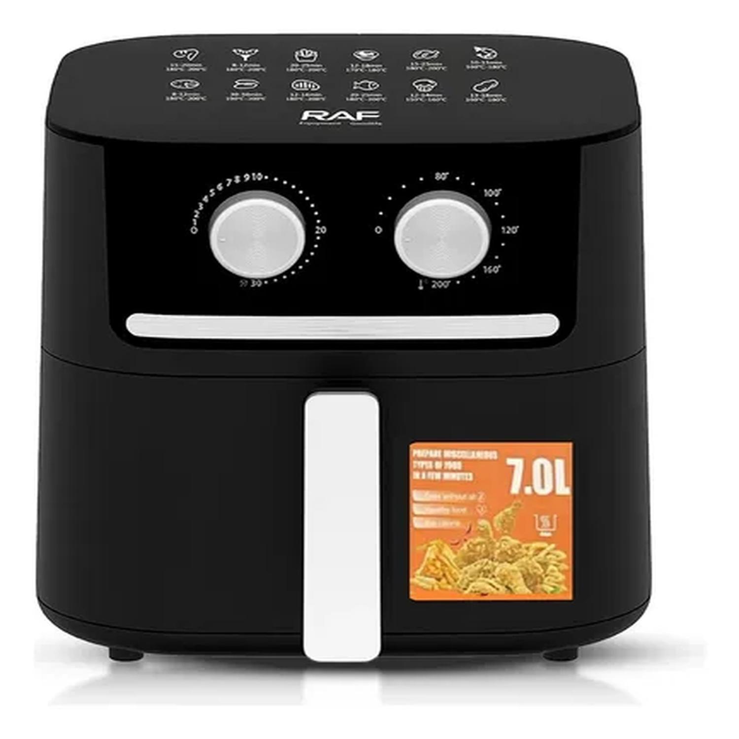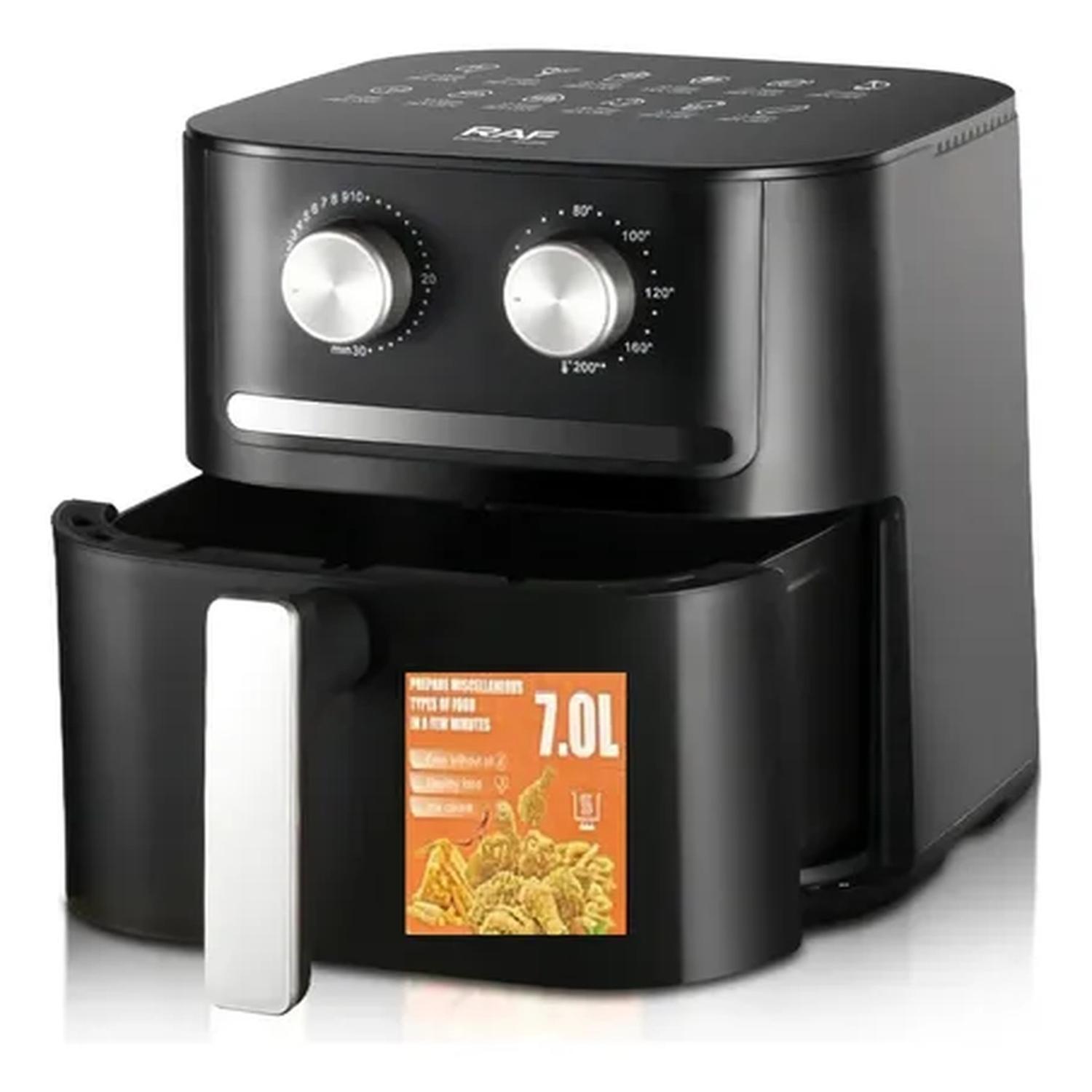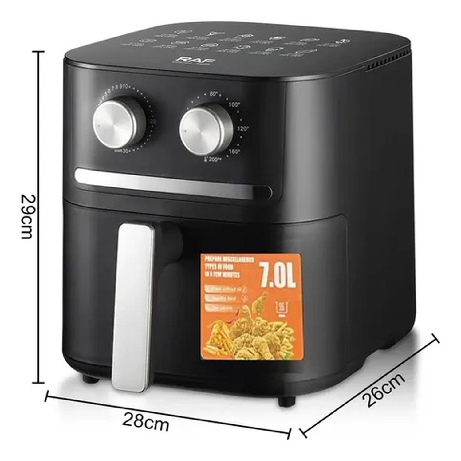 La freidora de aire RAF de 7 litros y 1600W es la solución perfecta para cocinar de manera saludable sin sacrificar el sabor. Con su avanzada tecnología de circulación de aire 360°, disfrutarás de alimentos crujientes usando hasta un 80% menos de aceite que en la fritura tradicional.