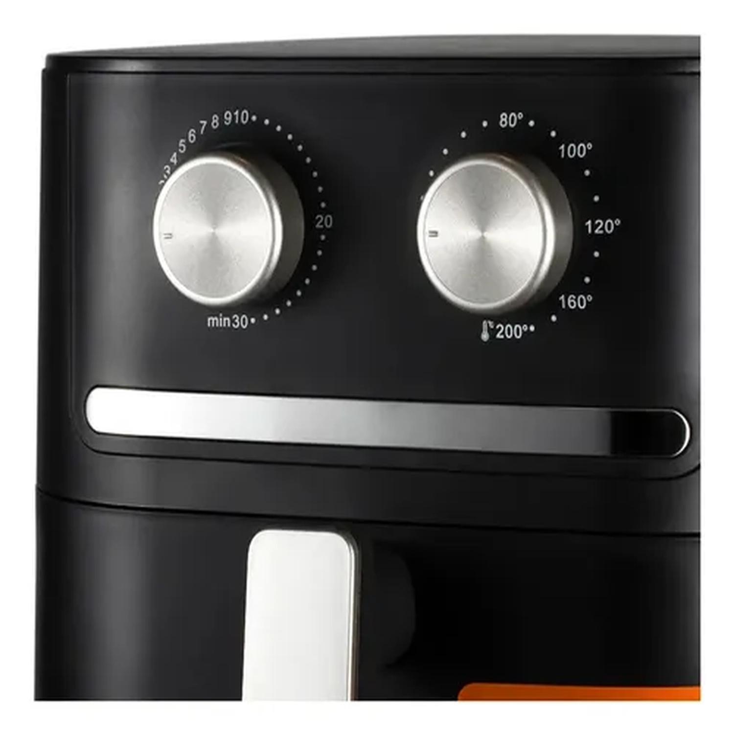 Ideal para quienes buscan una alternativa saludable a la fritura tradicional, esta freidora de aire combina capacidad, potencia y facilidad de uso en un elegante diseño negro.